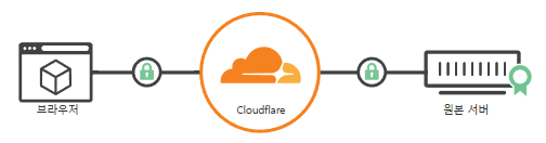 브라우저 ←🔒→ Cloudflare ←─→ 원본서버